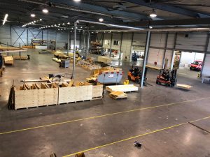 Onze nieuwe locatie, gelegen op het bedrijvencomplex Vijfsluizen in Schiedam, ligt pal aan de A4 en is hierdoor gemakkelijk te bereiken. De werkplaats bestaat uit twee hallen, één hal waar de kisten geproduceerd worden en het verpakwerk plaatsvindt. Deze is voorzien van diverse zaagmachines en andere gereedschappen. Ook hebben wij vier heftrucks met een capaciteit tot 8 ton.